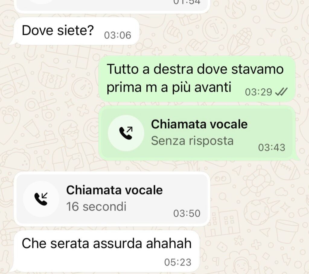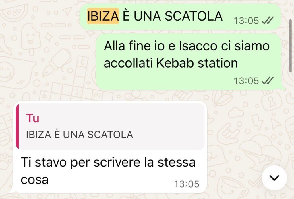 Invece mi sbaglio: non è ancora finita. Un ncc ci carica insieme a un paio di ragazzi che si lamentano della serata, “non c’era nessuno a sentì DJ TENNIS” (ma chi è ci chiediamo tra di noi) e loro ci rispondono che è famoso, che suona ad Ibiza. Poi inizia un momento che non so spiegare: uno dei due, come una sorta di Piero Angela, inizia a raccontarci il suo rapporto con Ibiza e dice testuali parole: “IBIZA È UNA SCATOLA”. Nessuno ha il coraggio di chiedere di più, lui lo ripete varie volte: “Devi capì che Ibiza è una scatola”. Ora, io ad Ibiza non ci sono mai stata (e non so se ci andrò mai), ma non riesco a non pensare a Guzzanti e al suo pacchetto azionario in Boris. Forse nemmeno questo collegamento ha senso ma a quel punto sono le cinque e loro scendono a Garbatella. Io proseguo con Isacco e ci prendiamo un kebab a stazione Trastevere: è buono ma l’unica cosa che riusciamo a fare è pensare a questa benedetta scatola.